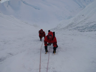 After a 6am start and 6 hours of uphill struggle we arrived at high camp (5500m), a 1200m altitude gain. We had 12 hours to hydrate and try to adjust to the altitude a bit before trying to climb the mountain. It was particularly sobering when an avalanche scoured our route at about 5 pm after the sun had been warming the summit cornices all afternoon. At least the route would be clear of any fresh snow.!