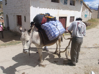 At the trailhead in Cashapampa, I arranged for an arriero (mule driver) and burros (donkeys) to transport our equipment 2 days up valley to Alpamayo basecamp (4300m). At $10 a day for the arriero and $5 for each mule, its a cheap way to avoid carrying a heavy pack.