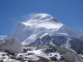 After a few days of adjusting to the altitude at ABC, Ryan and I set of on a reconnaissance mission to have a look at our intended route on the mountain, the South West face. We watched it for a few hours through the obscuring clouds and hoped the conditions on the face would be conducive to a safe and fast ascent once we were acclimatised. The face looked steep intimidating and foreboding. A great adventure in the making.