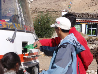 We all arrived in Kathmandu in early September and prepared to travel overland to Cho Oyu via the Chinese-built friendship highway. Our international team bus weaved its way from the warm Nepalese forests to the arid Tibetan plateau. 6 days of gradual ascent through the ghost towns of Nyalam and Tingri gave us an opportunity to get to know each other and sample the local cuisine and toilets.